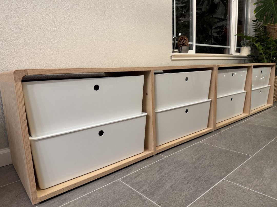 Standard 3‑drawer format; width, depth, and height tailored to your space. Our builder locks structural clearances so custom doesn’t compromise strength.