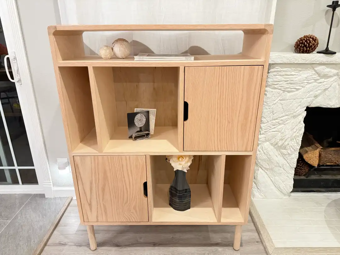 Red oak, reimagined. Solid high quality red oak carcass and planes, hand‑fitted joinery, and custom red‑oak legs. Built in Fremont, CA. No MDF. No Plywood. No shortcuts.