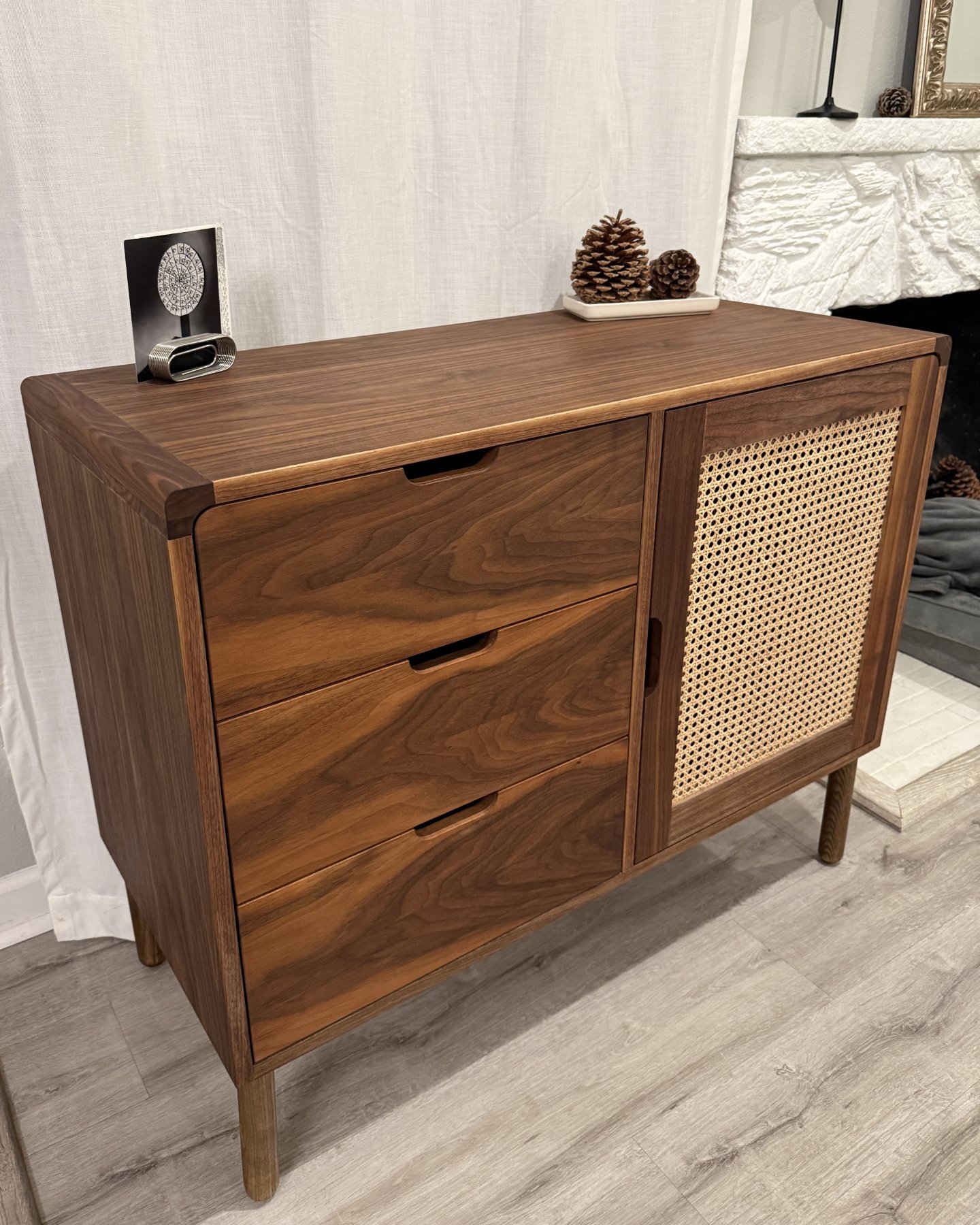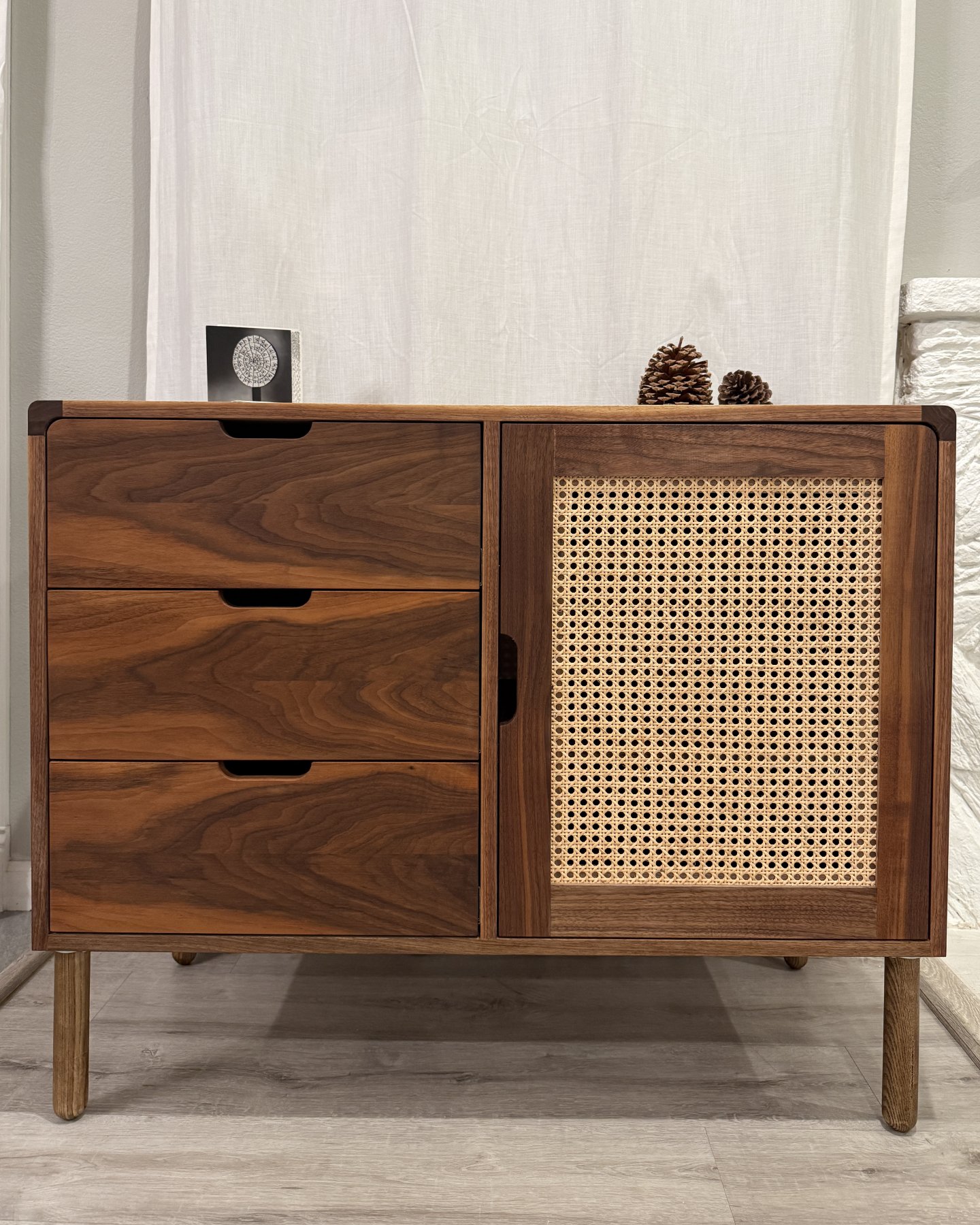 Japanese Style Walnut Side Cabinet /w Cane Webbing Door